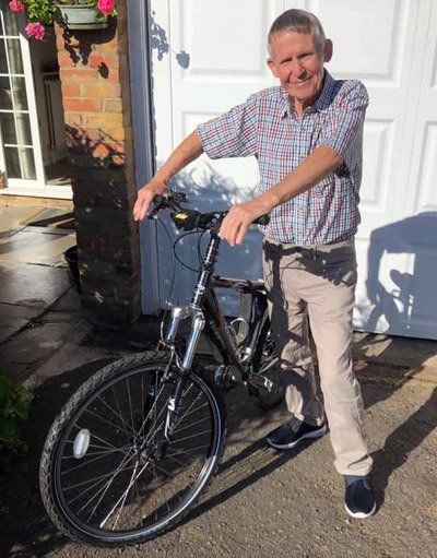 Graham and his trusty bike on which he criss-crosses the village on his fund-raising efforts and does his sponsored rides.