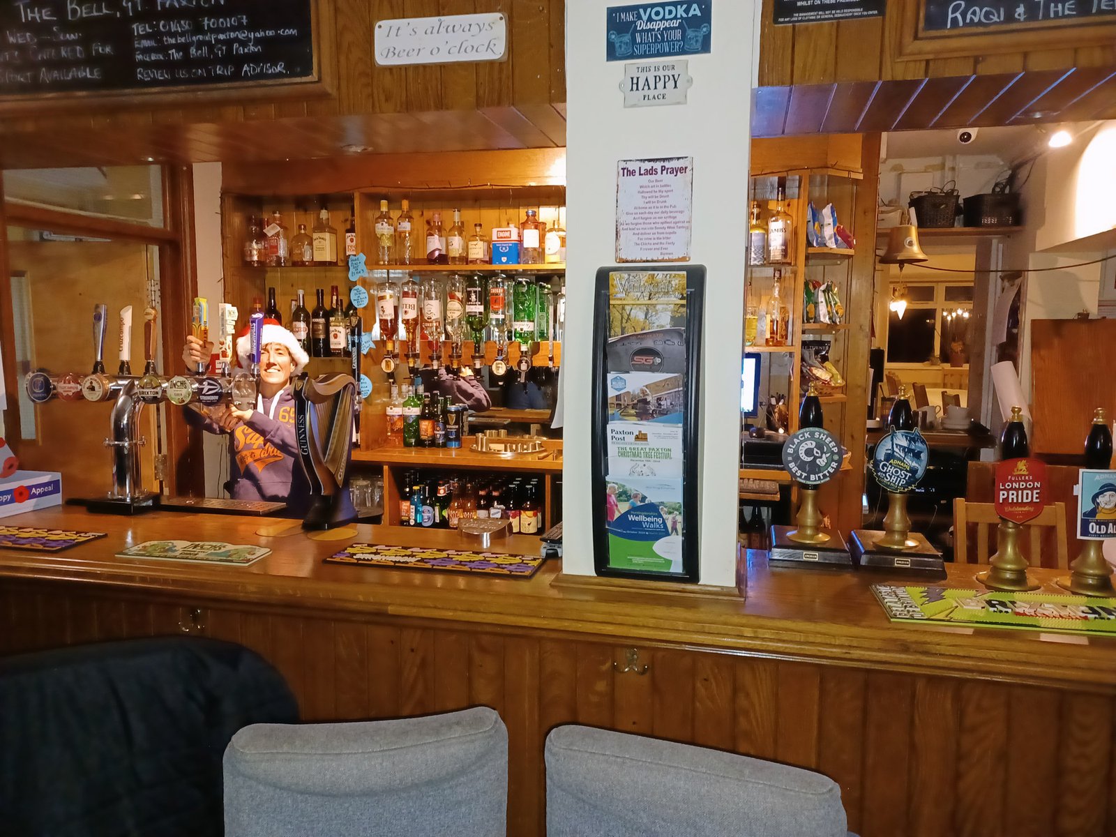 If you look carefully, you can see one of Santa's elves working hard to bring festive cheer to the villagers of Great Paxton. Rumour has it that "Ding dong merrily on high" was written about the Bell and its landlady.