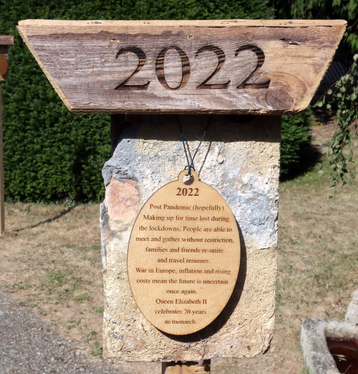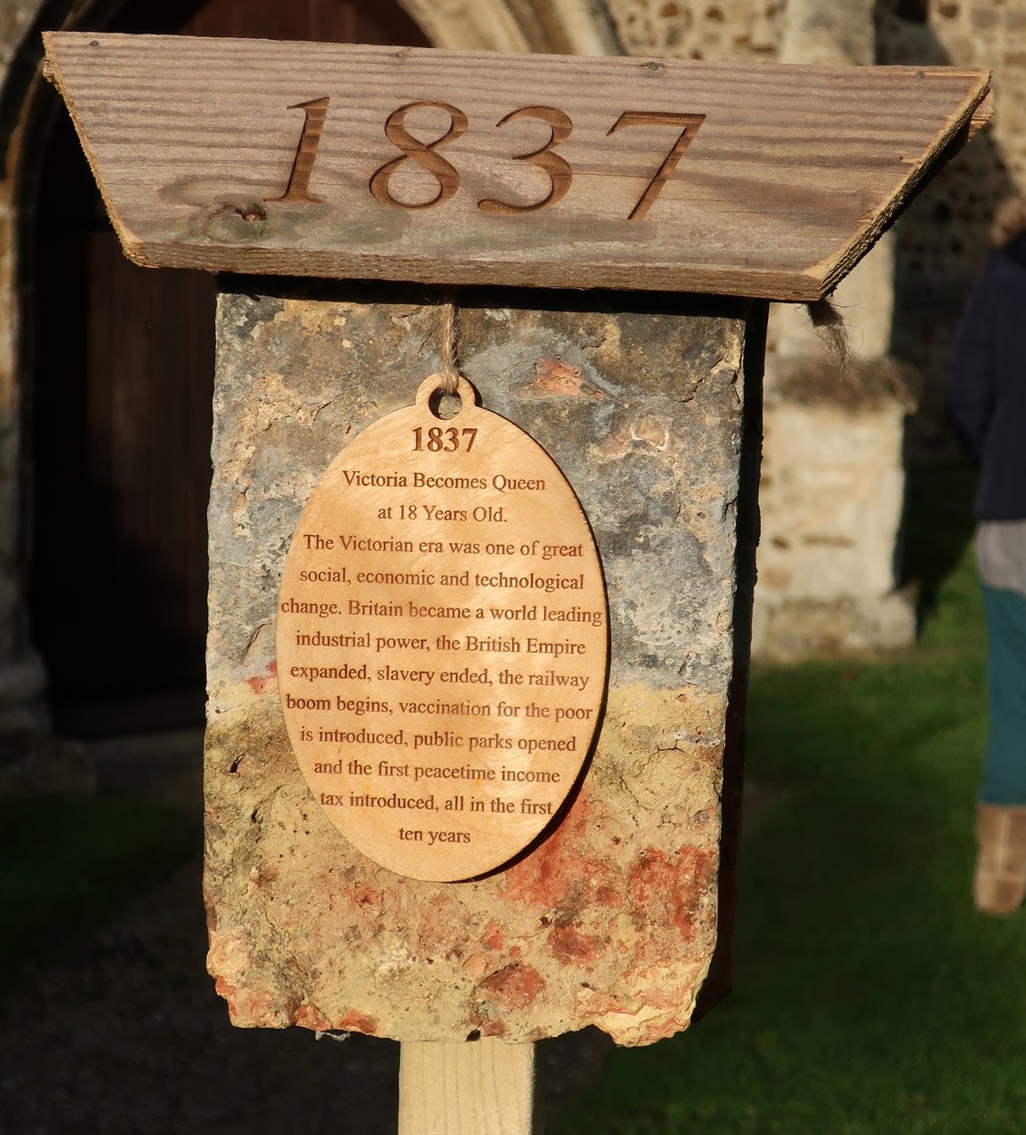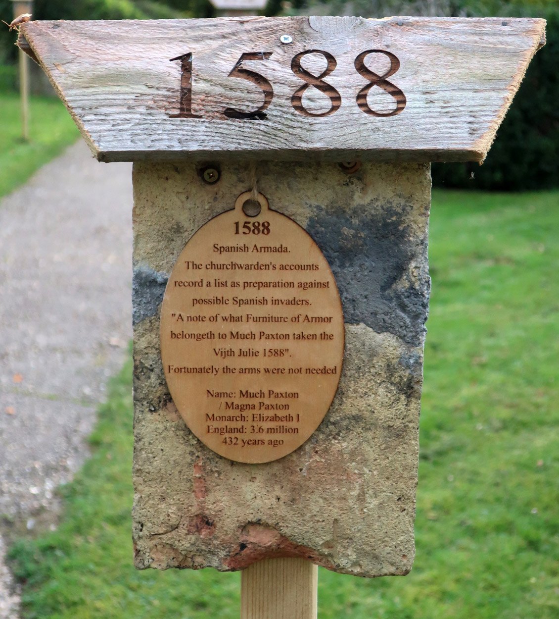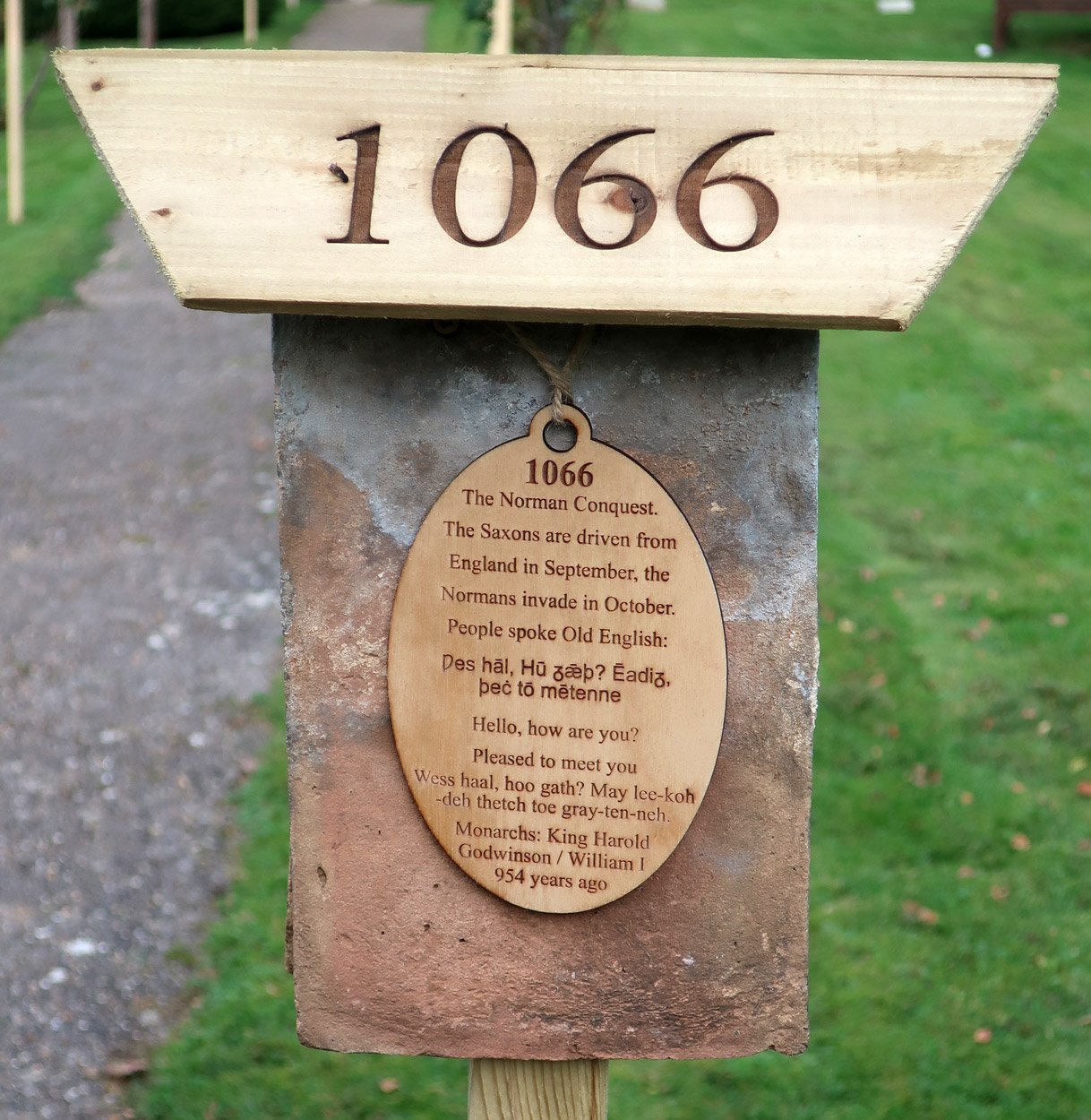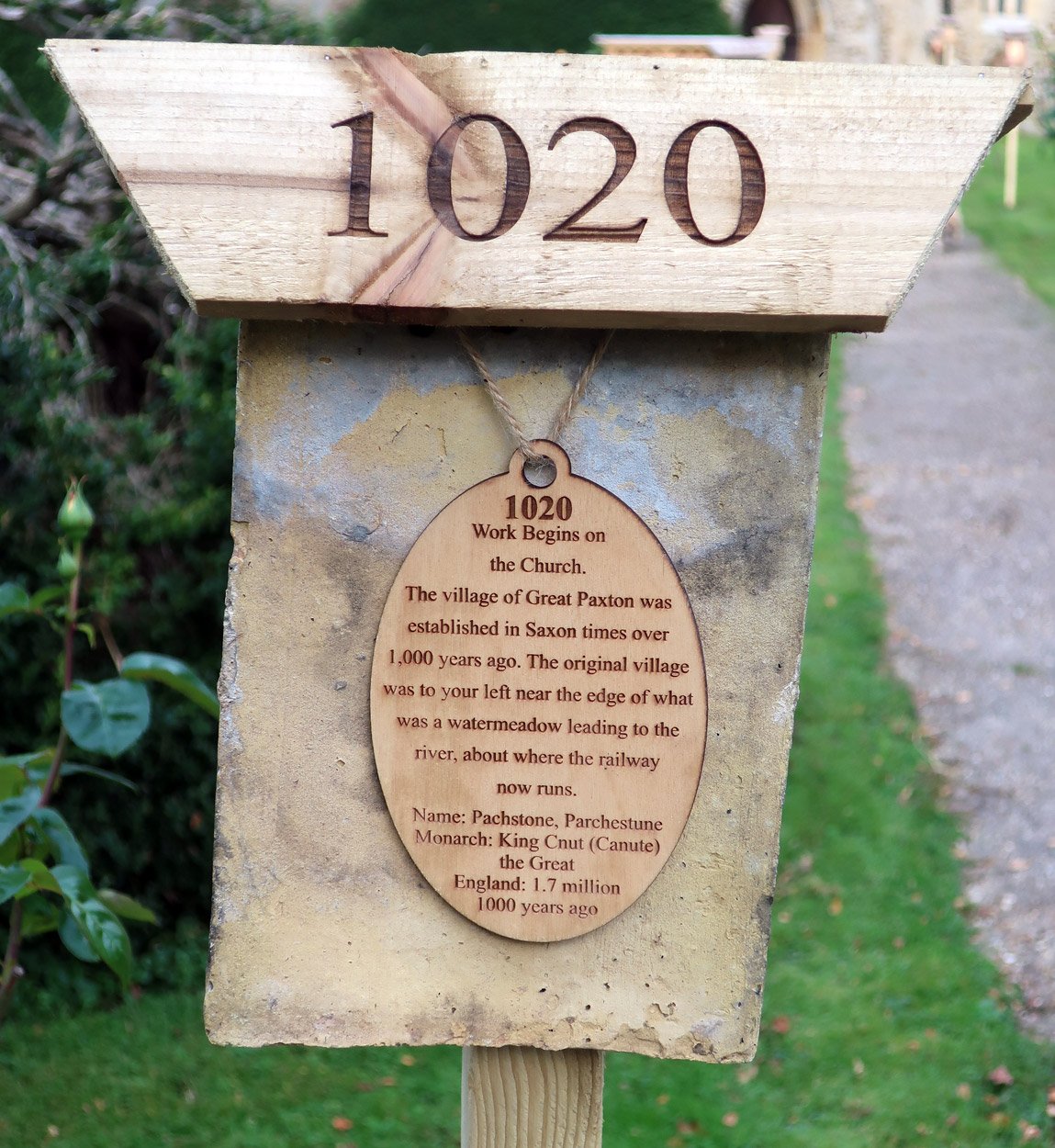 A 1,000 year time line erected along the church path from the entrance gate to the church door during the latter part of 2020 and then again in 2022 for the delayed 1,000 year celebration. Some significant dates in the 1,000 year history of the village. The dates and events chosen are those that happened in the village or elsewhere that will have had effects felt here directly.