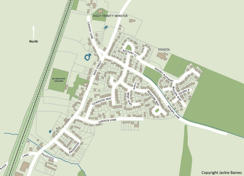 Even today the village lies in almost exactly the same shape and location that it always has for over 1,000 years, a triangle of the High Street, London Lane and Adams Lane with spurs down to the church and river. The difference being that what was once farmland and grazing in the heart of the village triangle is now housing.