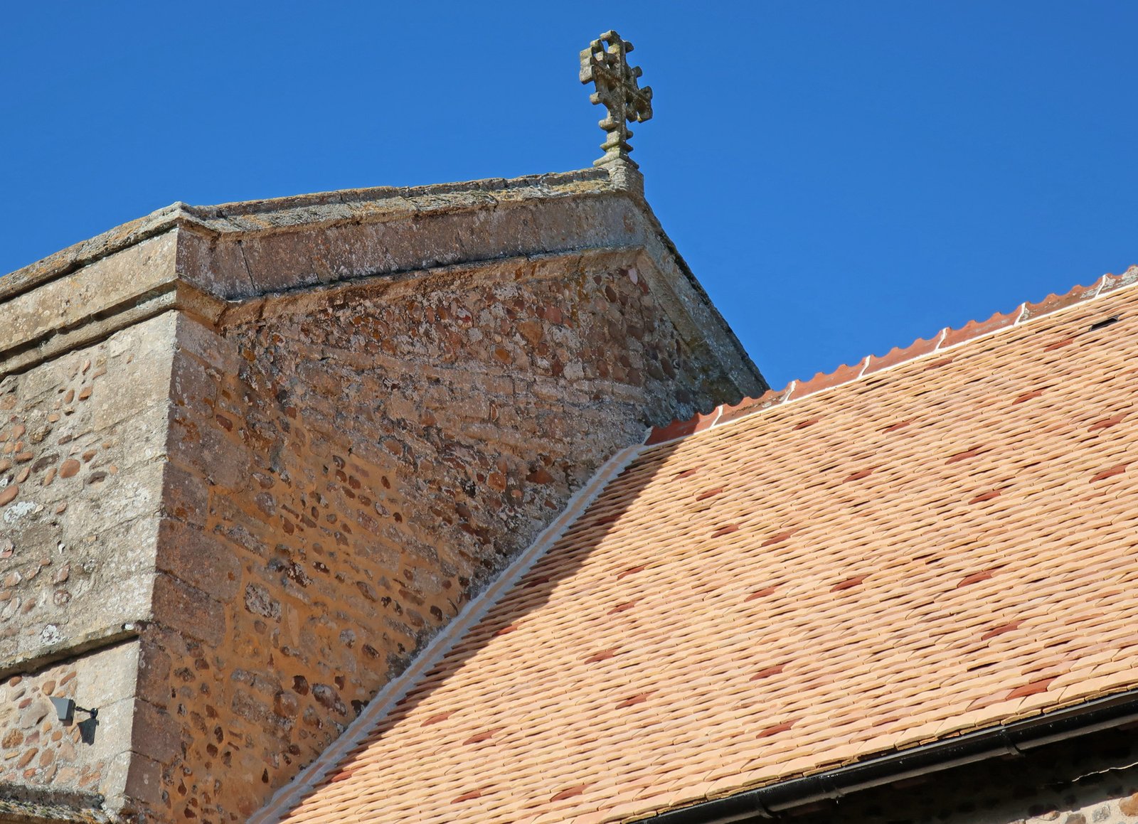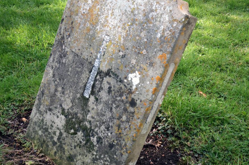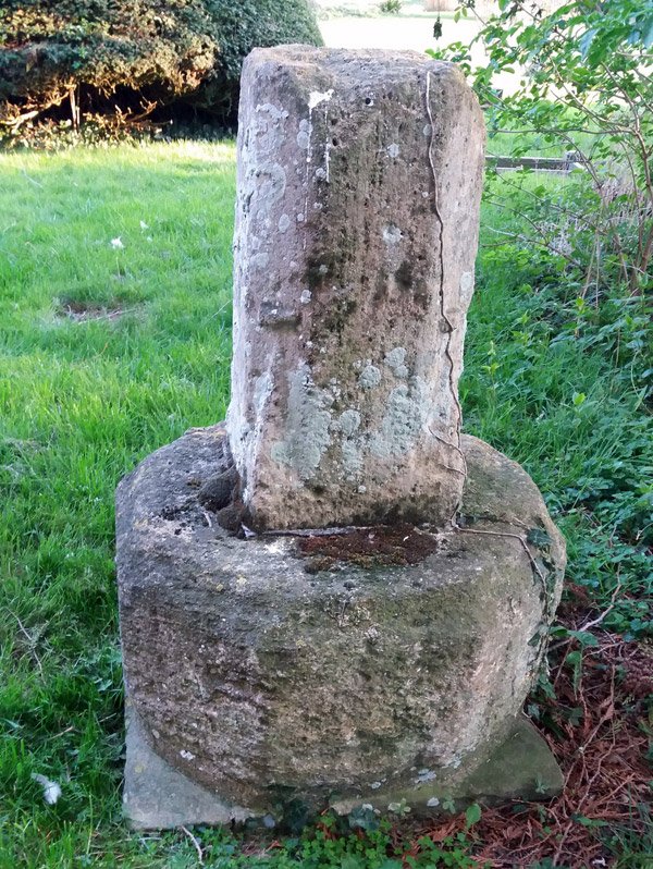Near the tower - stands the base of an old broken cross. The first record of this is from 1491 when it was referred to as "stub cross" so it was presumably already broken at that time. It is referred to in other writings as the "Saxon Cross" and the triangular flutings at the corners are characteristic of Saxon decoration so it may date from Saxon times as does the church. It is thought to have originally stood at the junction of Adams and London Lane, a place also previously called Stubcross. Some time later it was incorporated into the wall around the church until it was removed when the wall was rebuilt in 1896. The rest of the cross is said to be in the fabric of the tower. How it came to be broken is unknown.