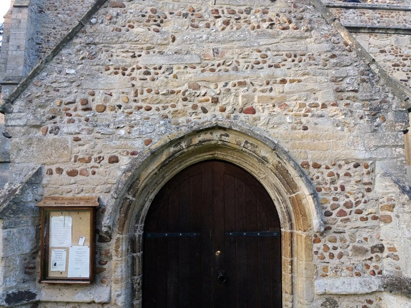 On the north aisle of the church - is the blocked up "Abbotsley Door" (look carefully). This is said to be where the dead from Abbotsley were brought into the church after being carried along the "Abbotsley Bier Baulk" that came from that village and through the spinney changing route to cross as few fields as possible due to the believed blighting effect of the dead. The route then skirted the edge of the village avoiding houses for the same reason before approaching the church. The bearers of the coffin would then have to wait until just before sunset before they could bring their charge into the church awaiting the funeral the next day.