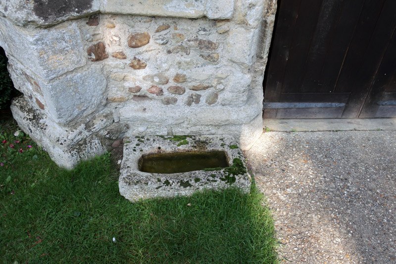 Outside the church door to the left - is this stone, a probable "stoup", a basin placed at the entrance of a church filled with holy water with which people used to bless themselves as they came in. This was found under the floor of the tower in 2009 during building works and is thought to date from the early medieval period being taken from its original purpose for use as building materials during one of the major remodeling events. It may date back to the original Saxon minster and have been used as a water holder for 300-400 years before burial beneath the tower floor for the next 600 or so and then brought out into the light of day again to spend the last ten years here.