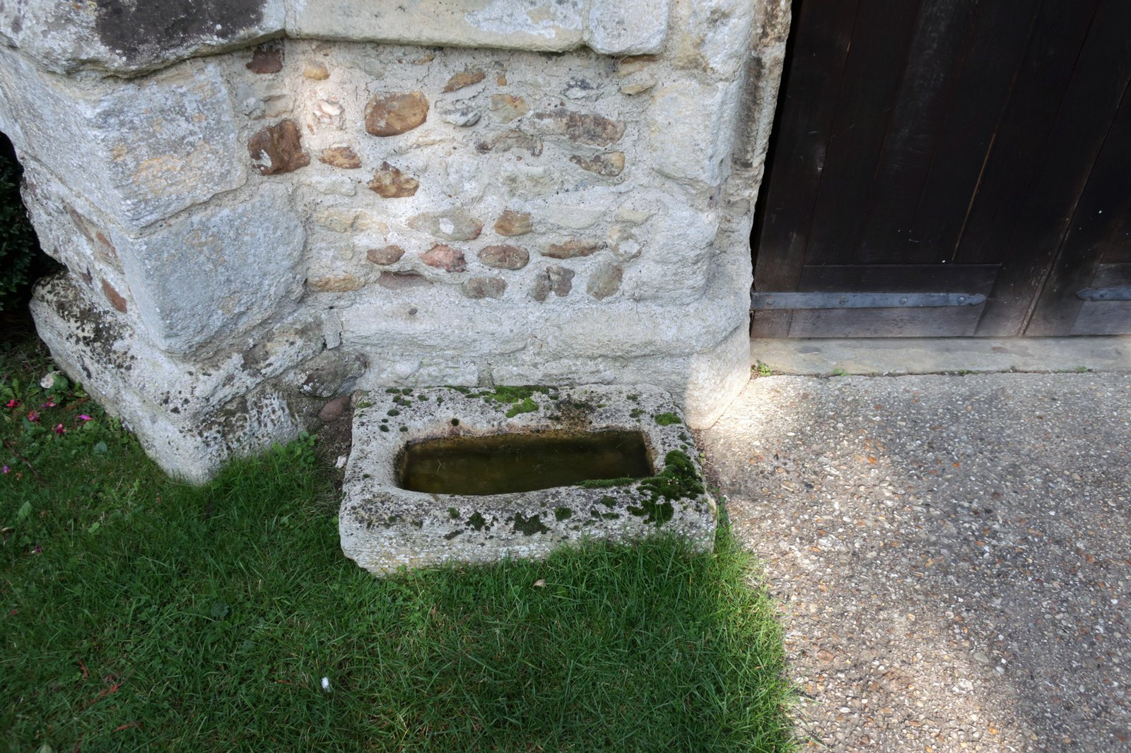 The main entrance to the church - Above the door of the porch are some longer dressed (shaped) stones in the wall, these are thought to be from stone coffins that were dug up when the churchyard was full and the bones moved to make space for more. With no good local building stone, everything was useful. The porch was built when the church was 330 years or more old around 1350, and possibly / probably a wooden church preceded this so there was plenty of time for graves to fill the church yard.