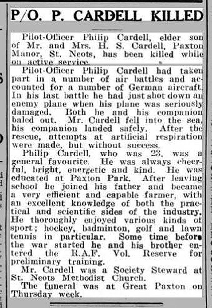 “Pip” Cardell was born at Manor Farm, Great Paxton (the farm