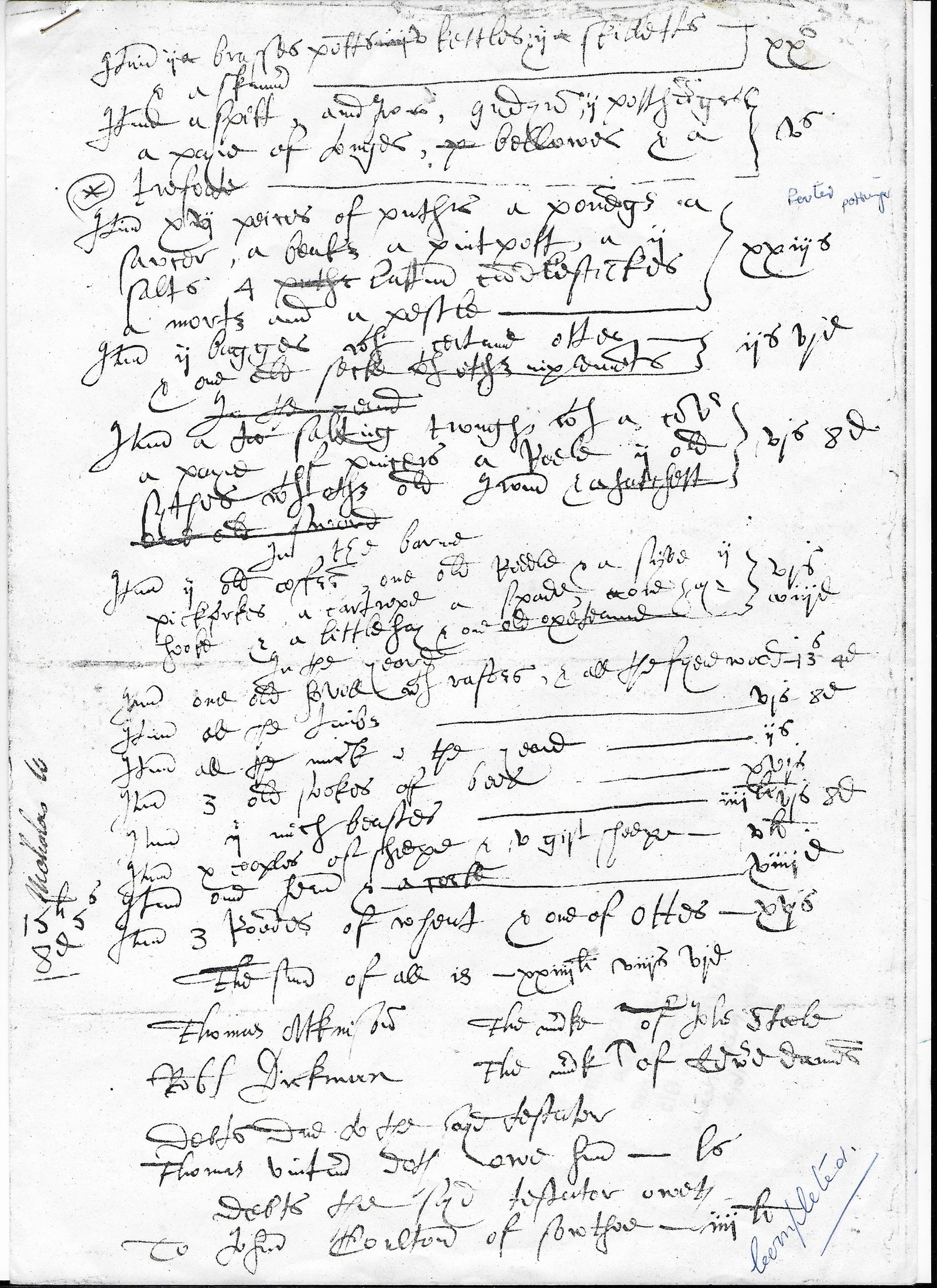 pitchforks, a cartrope a spade, one } vjs viijd (6 shillings 8 pence)
