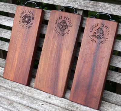 How to buy: I have a small stock of ready engraved boards and can engrave others to order within about 7 days, just pick which design/s you want on the board. Please with your details and the board pattern you want. By default the engravings and handles are placed as shown in the examples on this page.