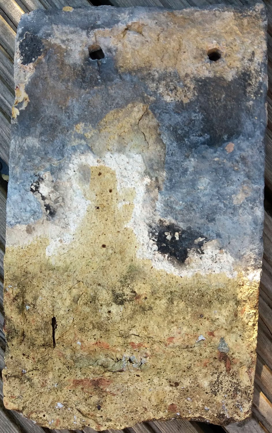 These tiles were hand made which can be seen by the variation in size and shape and that hardly any are properly flat, they also contain more inclusions of small stones and minerals than the red tiles. They may date anywhere from the middle ages to the end of the 19th century when the brick works closed down.